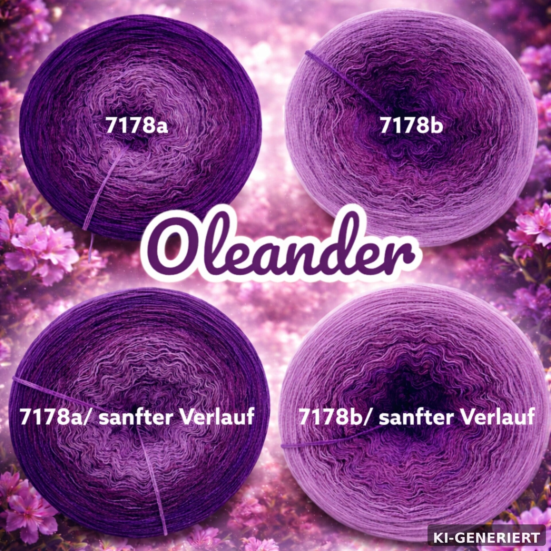 Die Farbwelt „Oleander“ ist inspiriert von der üppigen Blütenpracht des Oleanderstrauchs. Verschiedene Violett- und Lilatöne verschmelzen zu einem harmonischen Farbverlauf, der an warme Sommerabende und blühende mediterrane Gärten erinnert. Die Farben wirken edel, weich und zugleich ausdrucksstark.