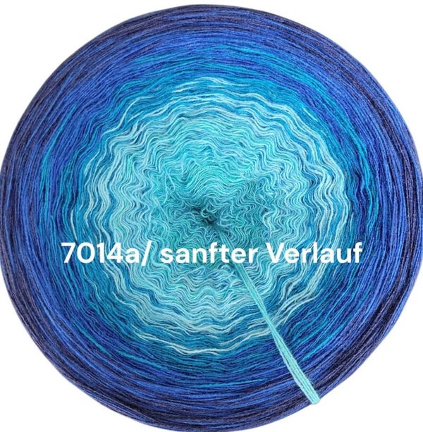 Hier kannst Du auch wählen ob du den Standardverlauf = Alle Fäden wechseln nacheinander von einer zur nächsten Farbe. Es gibt also Uni Abschnitte. oder einen Sanften Verlauf = es gibt keine Uniabschnitte.