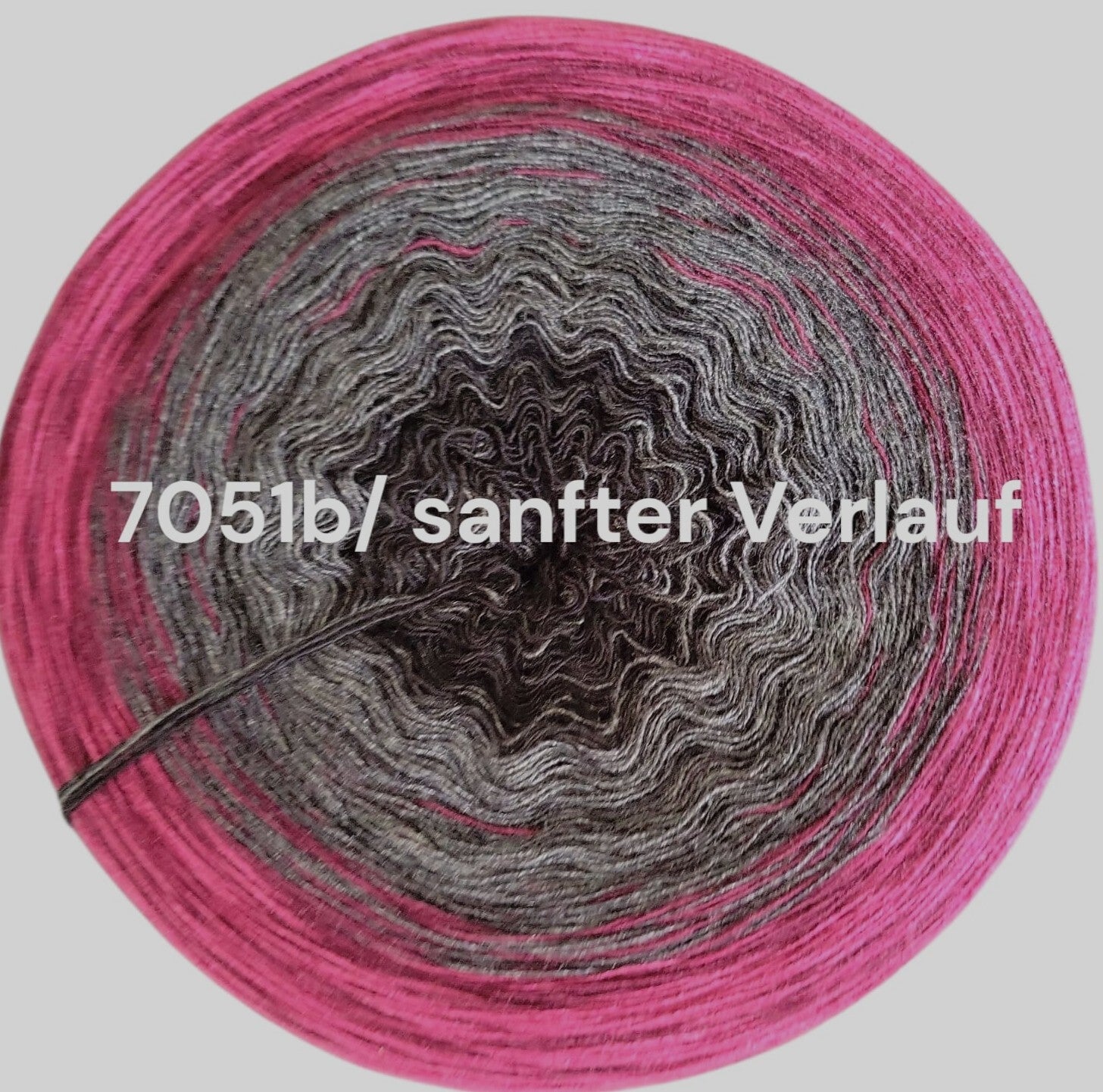 Hier kannst Du auch wählen ob du den Standardverlauf = Alle Fäden wechseln nacheinander von einer zur nächsten Farbe. Es gibt also Uni Abschnitte. oder einen Sanften Verlauf = es gibt keine Uniabschnitte.