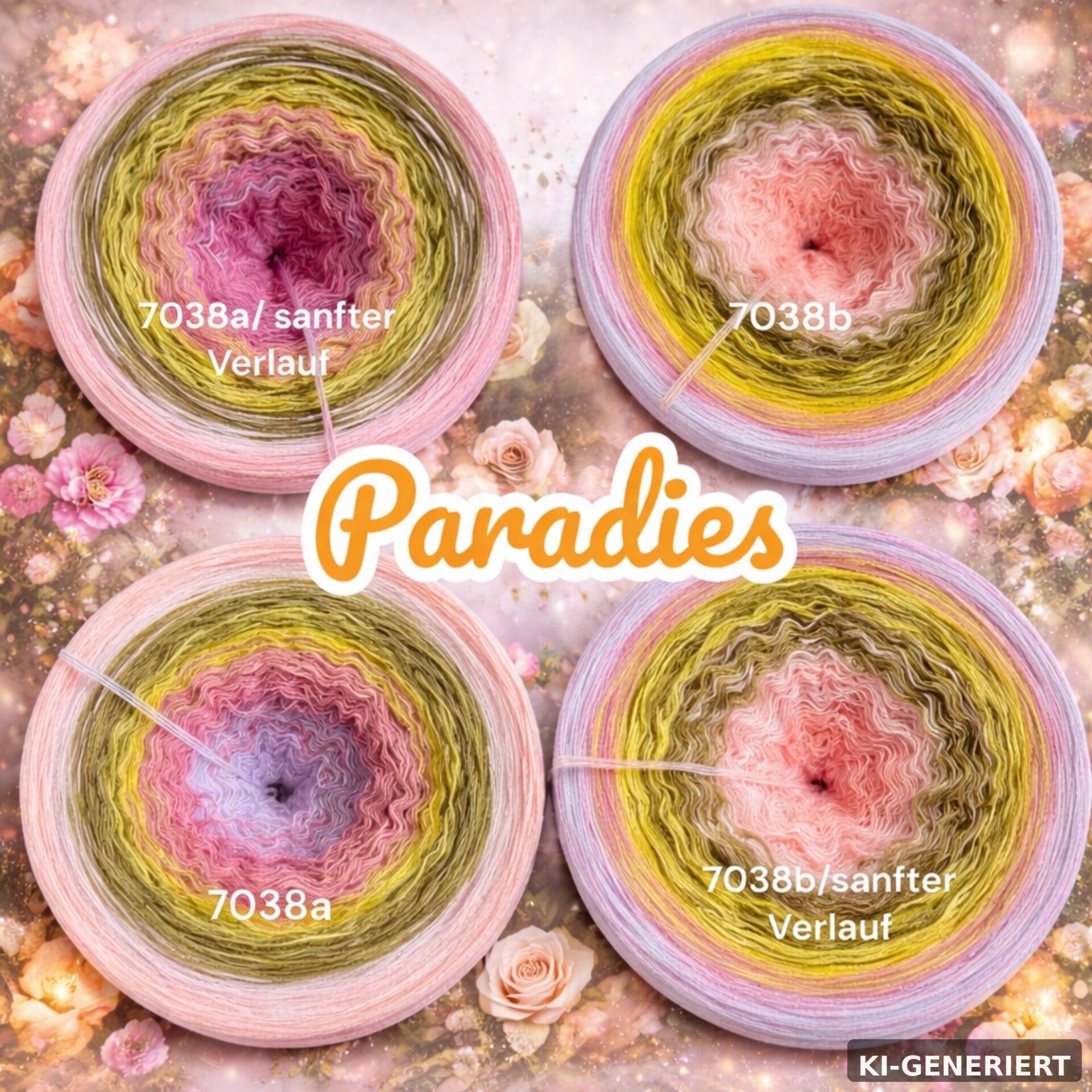 Die Farbwelt „Paradies“ verzaubert mit einer sanften, harmonischen Kombination aus zarten Rosé-, warmen Gelb- und frischen Grüntönen. Die feinen Abstufungen erinnern an blühende Gärten, sonnige Frühlingstage und die Leichtigkeit eines Moments voller Ruhe und Schönheit.