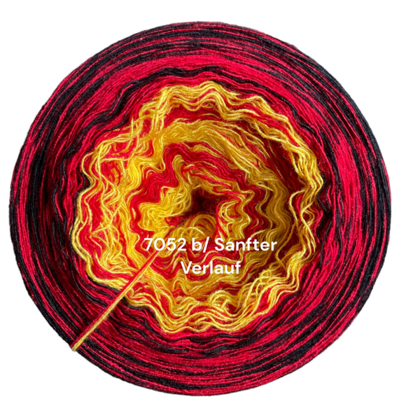 Hier kannst Du auch wählen ob du den Standardverlauf = Alle Fäden wechseln nacheinander von einer zur nächsten Farbe. Es gibt also Uni Abschnitte. oder einen Sanften Verlauf = es gibt keine Uniabschnitte.