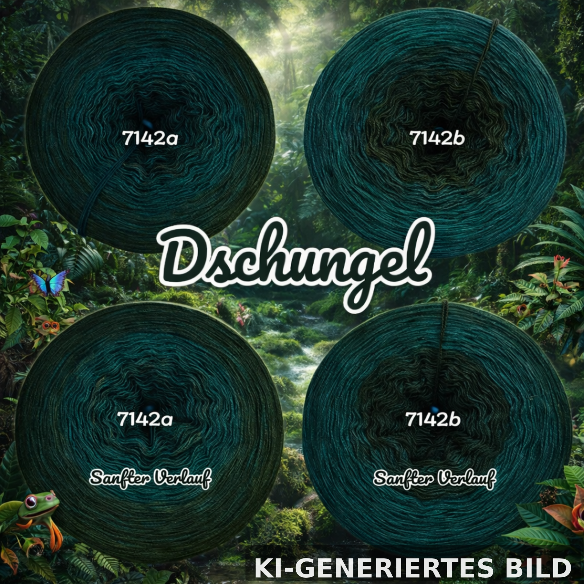 „Dschungel“ ist perfekt für Projekte mit Charakter und Tiefe – ideal für ausdrucksstarke Tücher, Schals oder Designs, die Natürlichkeit, Stärke und eine Prise Abenteuerlust vereinen. 🌿🧶✨
