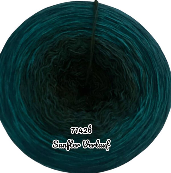 Hier kannst Du auch wählen ob du den Standardverlauf = Alle Fäden wechseln nacheinander von einer zur nächsten Farbe. Es gibt also Uni Abschnitte. oder einen Sanften Verlauf = es gibt keine Uniabschnitte.
